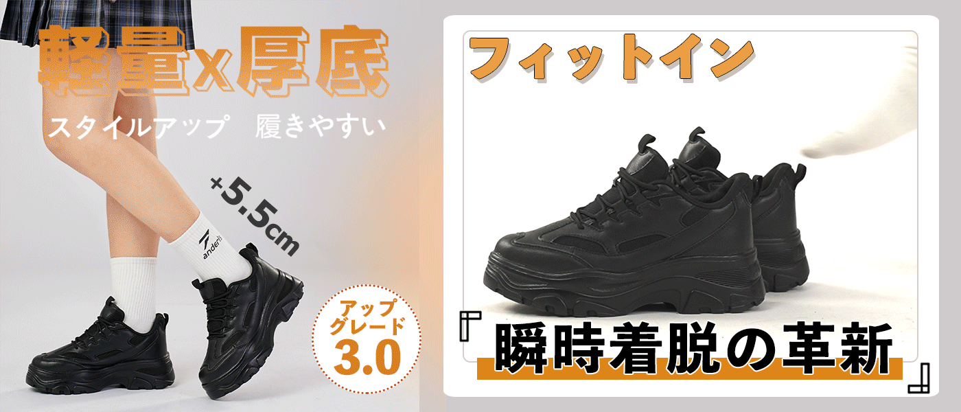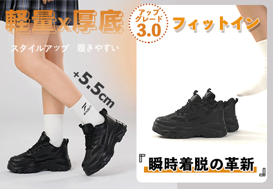 【身長+5.5cm 改良版2.0 イージーオン 1秒で履ける SNS大人気大絶賛】厚底 スニーカー レディース 軽量 防水 c107