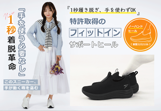 イージーオン スニーカー レディース スリッポン レディースシューズ 手を使わずに履ける 立ったまま履ける 痛くない ウォーキングシューズ g26