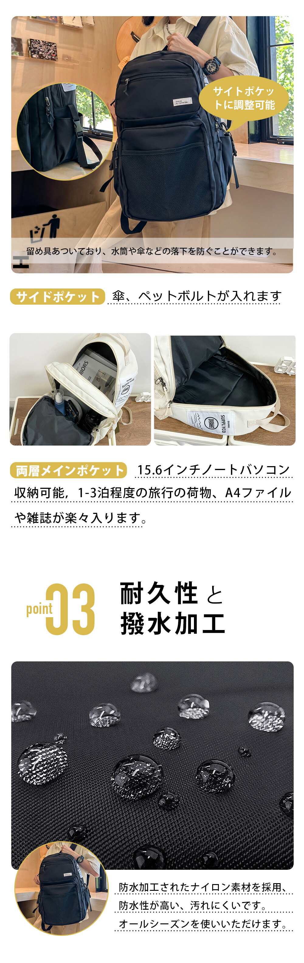リュックサック ユニセックス かわいい 多機能 PC収納 ビジネスリュック 6011