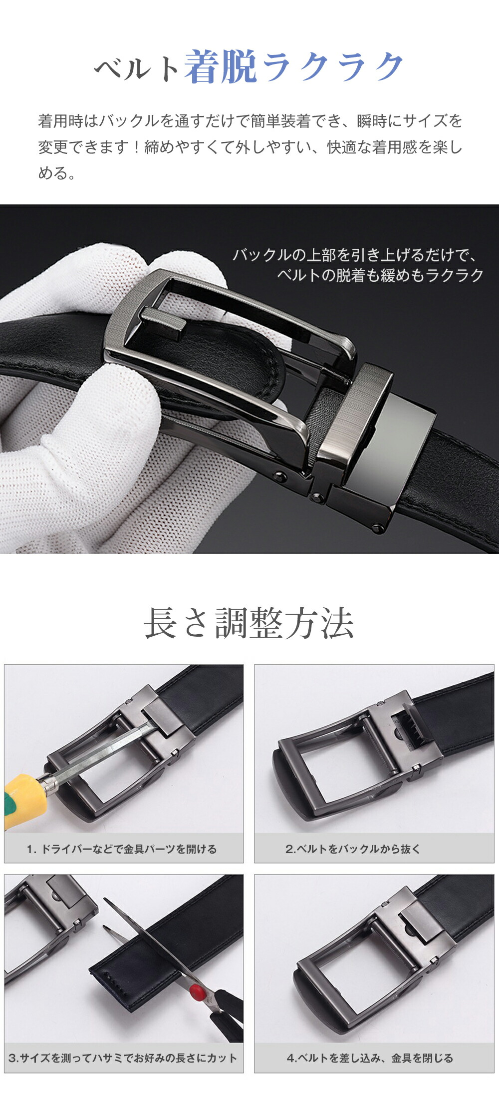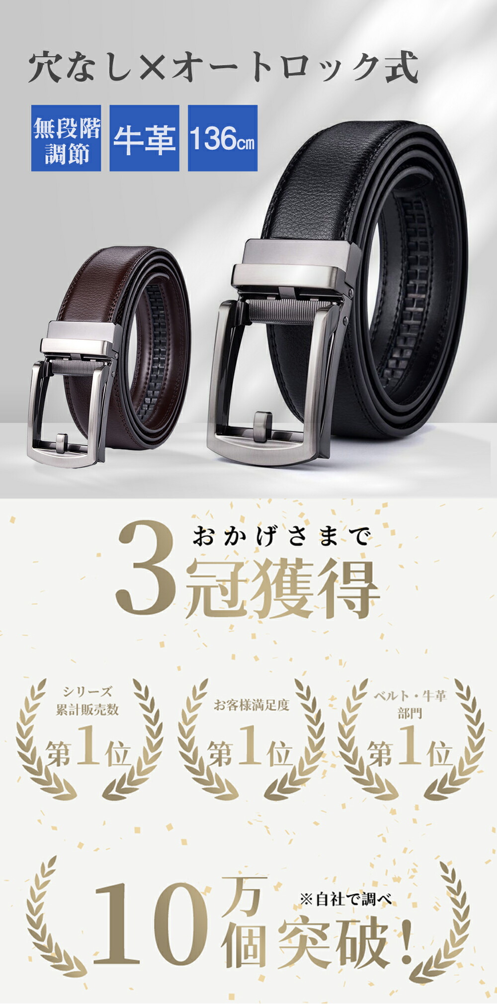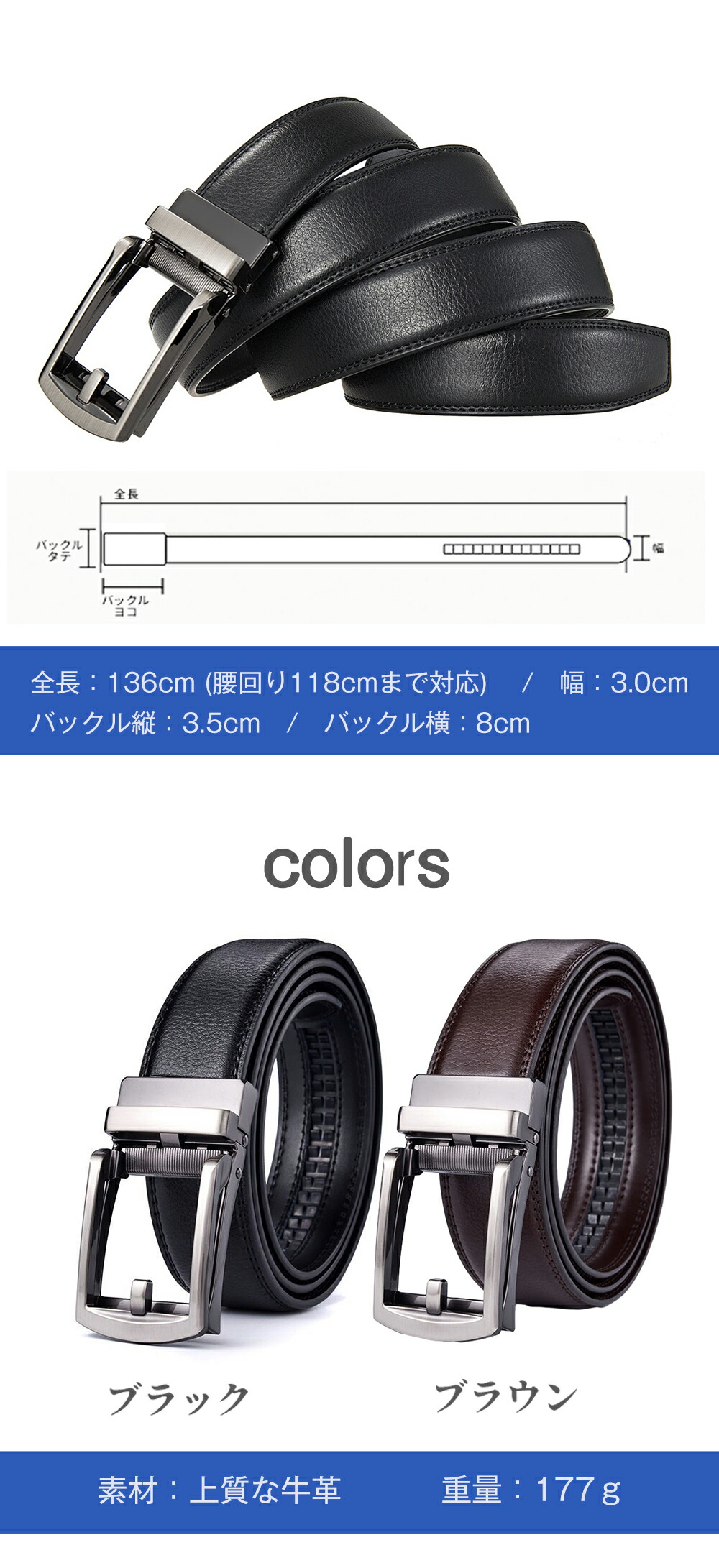 ベルト 穴なし オートロック 136cm 幅30mm レザー 紳士ベルト 自動 コンフォート 無段階無調整 ワンタッチ 仕事 就活 a081
