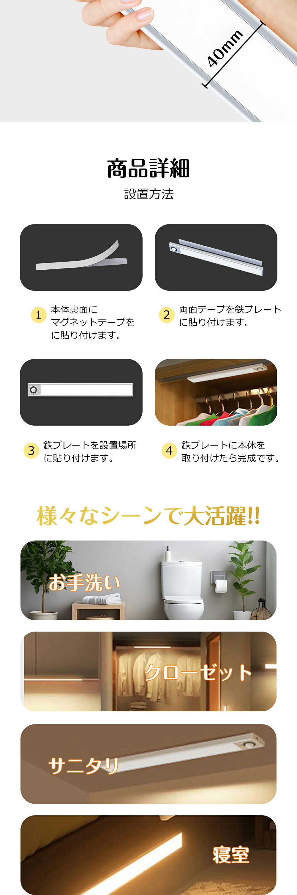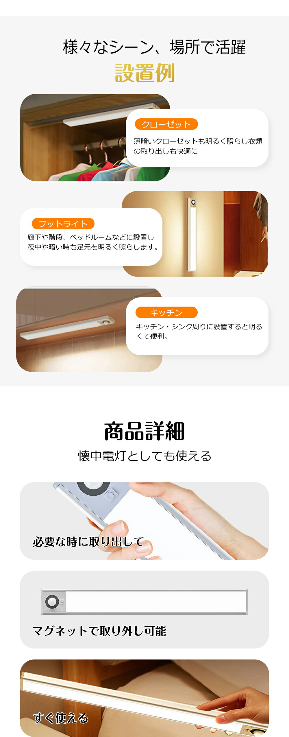 室内 人感 LEDセンサーライト フットライト キッチンライト 子供部屋 廊下 屋内 玄関 マグネット キッチン gyd01