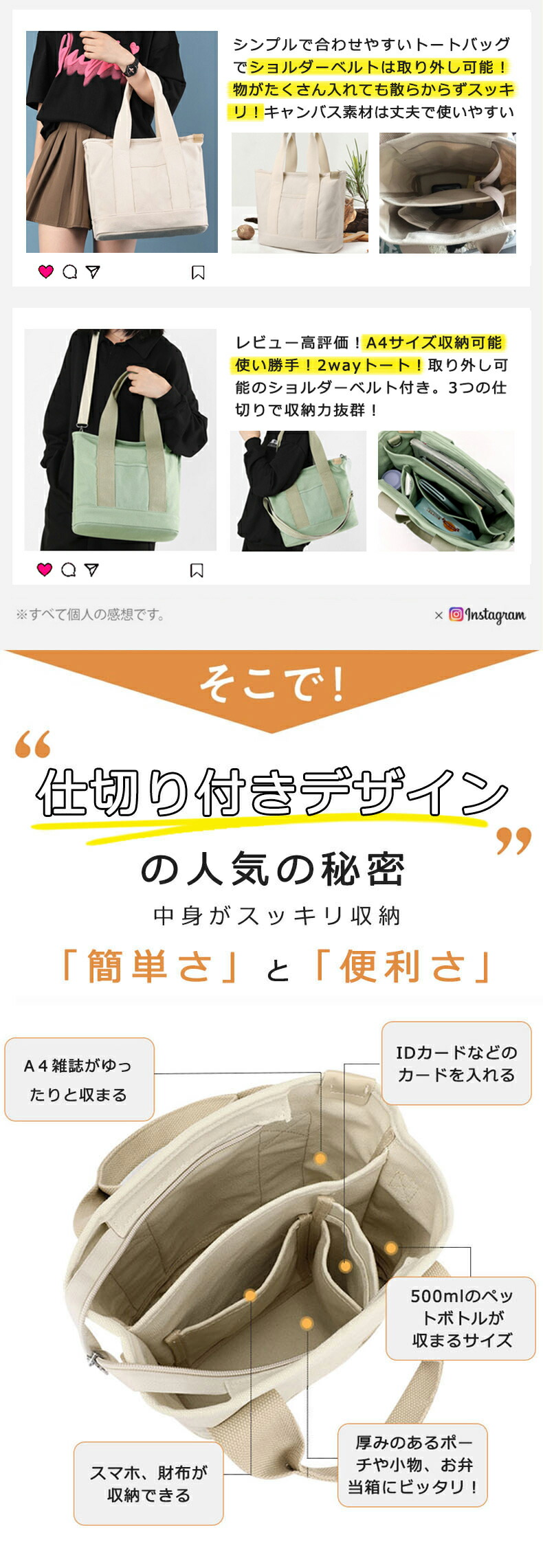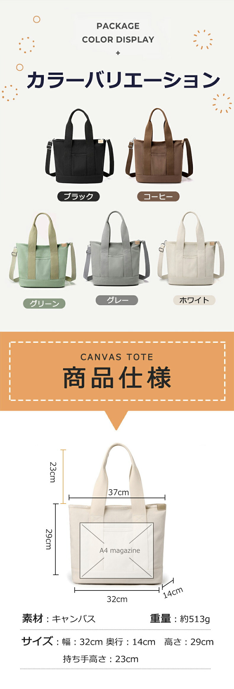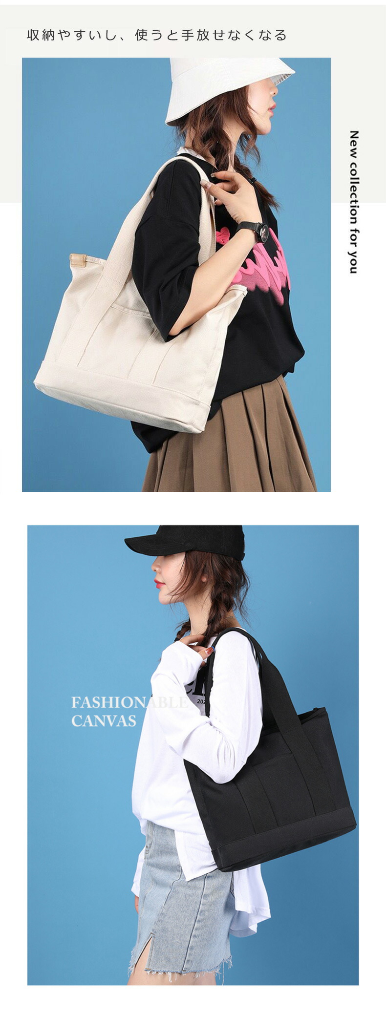 【期間限定セール】【2025秋冬 Secret Treasure シリーズ】無地 キャンバス トートバッグ ショルダー ベルト ファスナー付き A4 大容量 h304