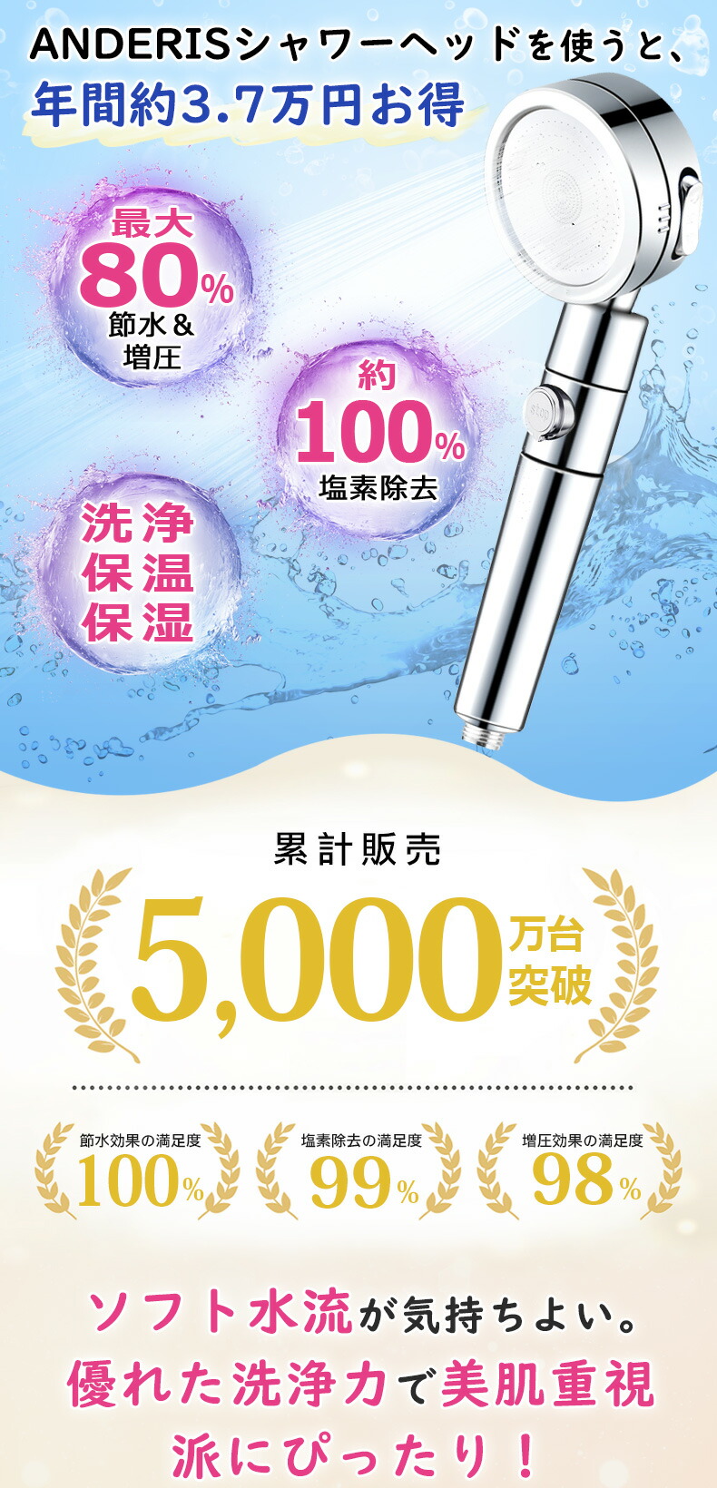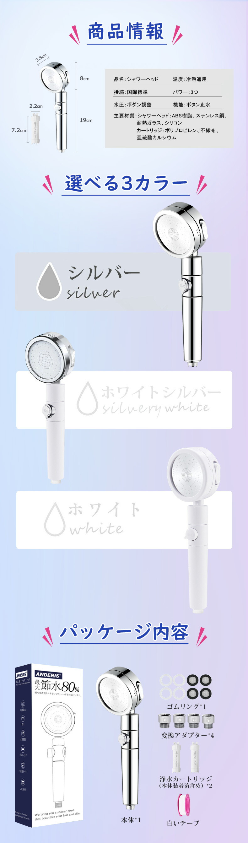 節水シャワーヘッド 水流調整 低水圧用 水圧アップ マイクロナノバブル 浄水 手元スイッチ 角度調整 hs07
