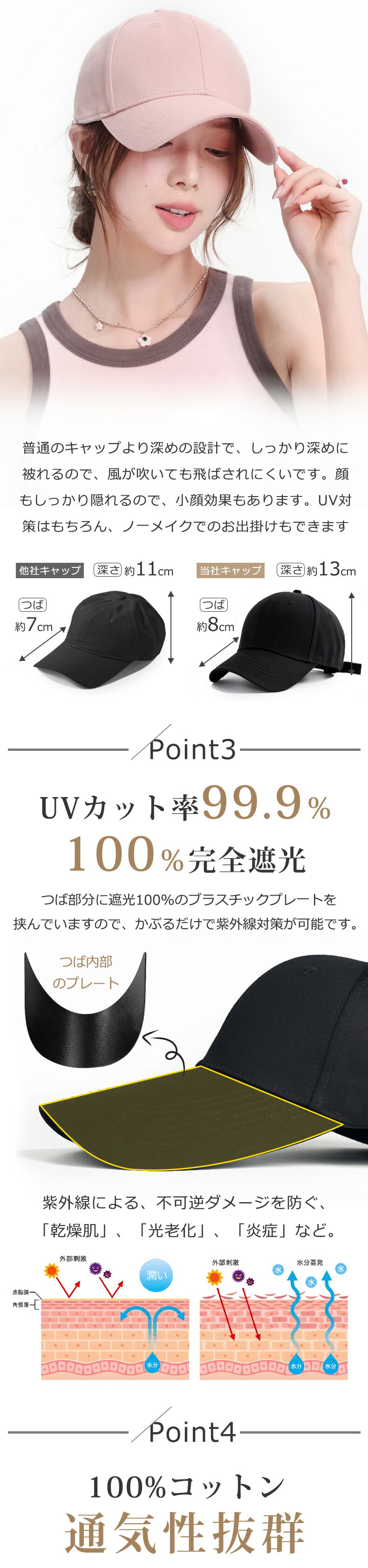キャップ レディース 深め uv おしゃれ メンズ 夏 ベースボールキャップ 帽子 mz1