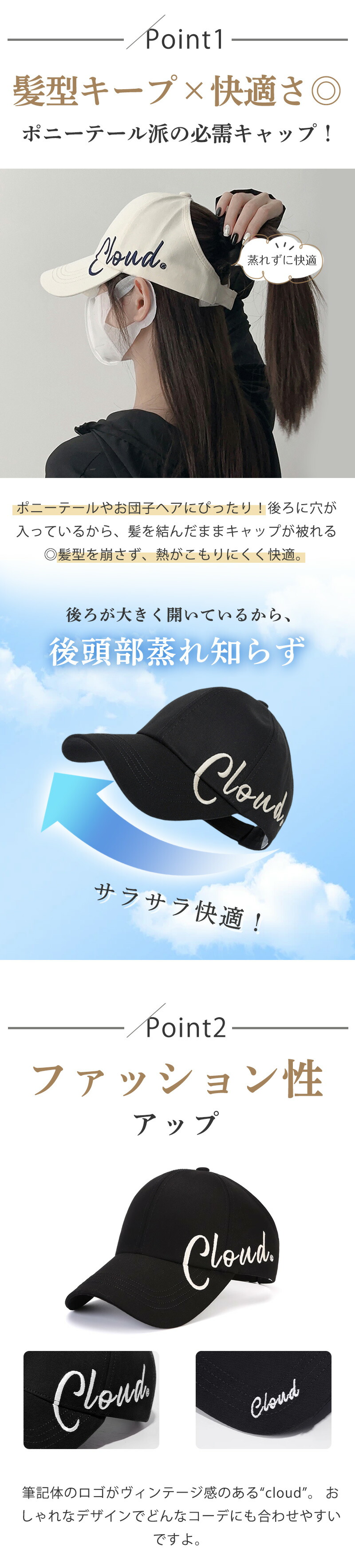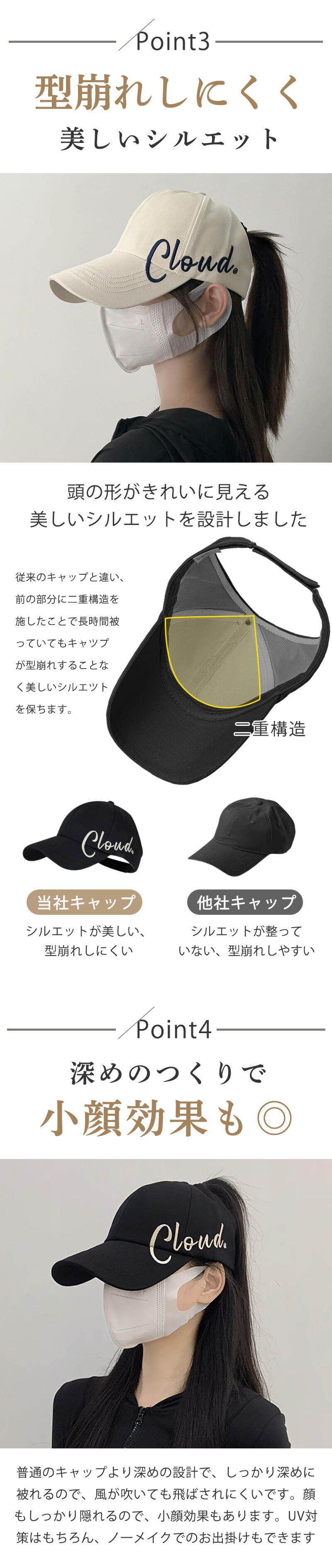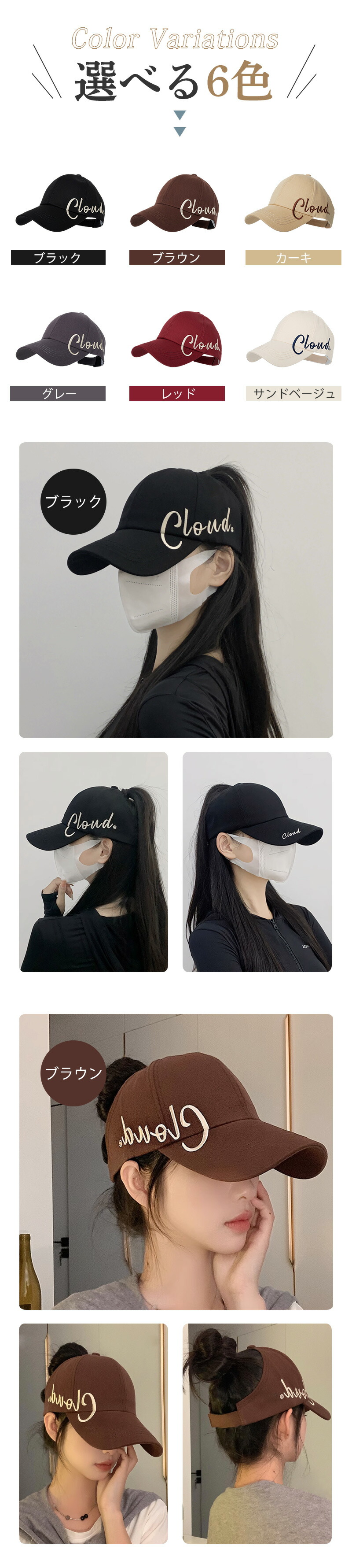 ポニーテール キャップ 帽子 完全遮光 99%UVカット mz4
