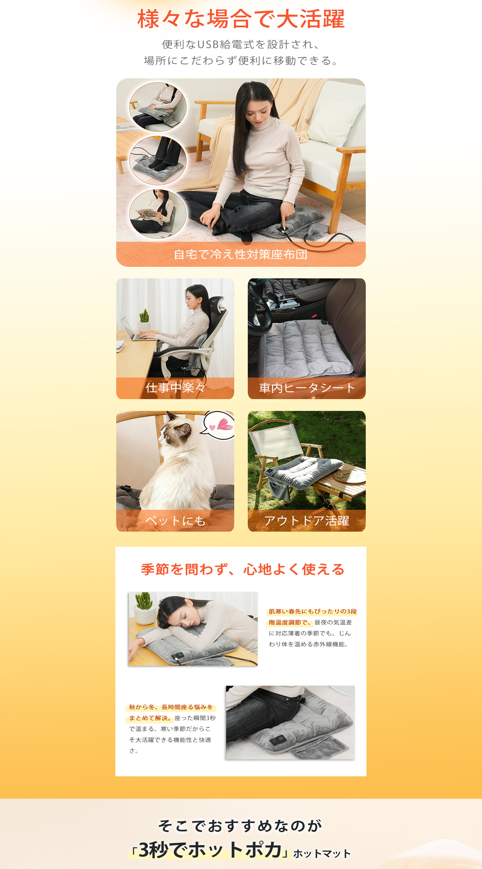 【2025進化版2.0】【防寒対策】【車用 オフィス用 自宅用 ペット用 アウトドア活躍】ホットマット 椅子 45cm シートヒーター 車 USBホット RZD0002