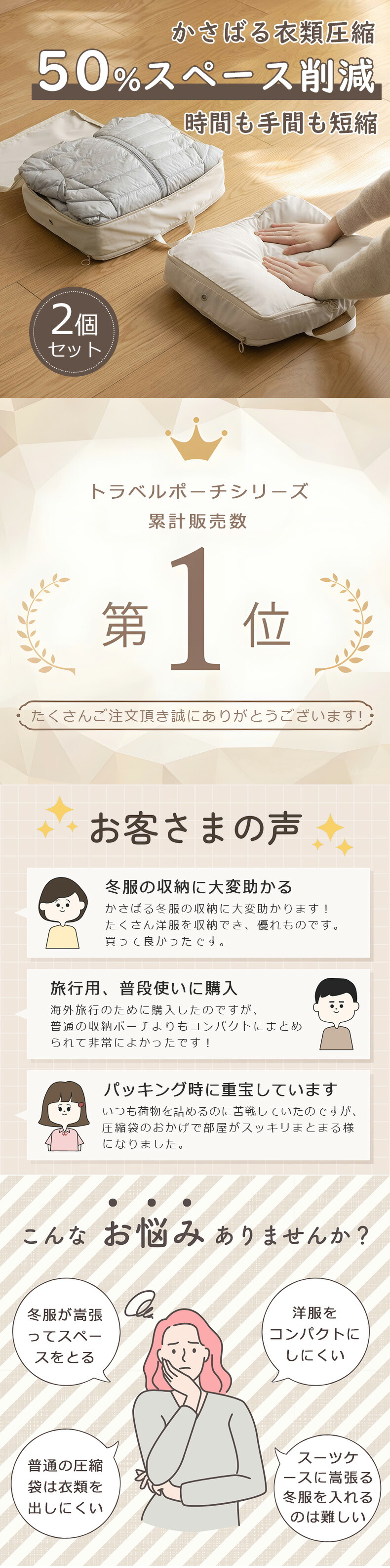 圧縮袋 トラベルポーチ コンパクト 収納ポーチ バッグインバッグ 水洗い可 仕切り ファスナー 旅行用圧縮袋 snb02