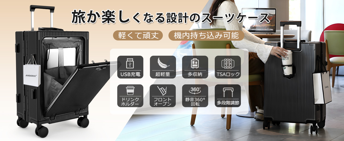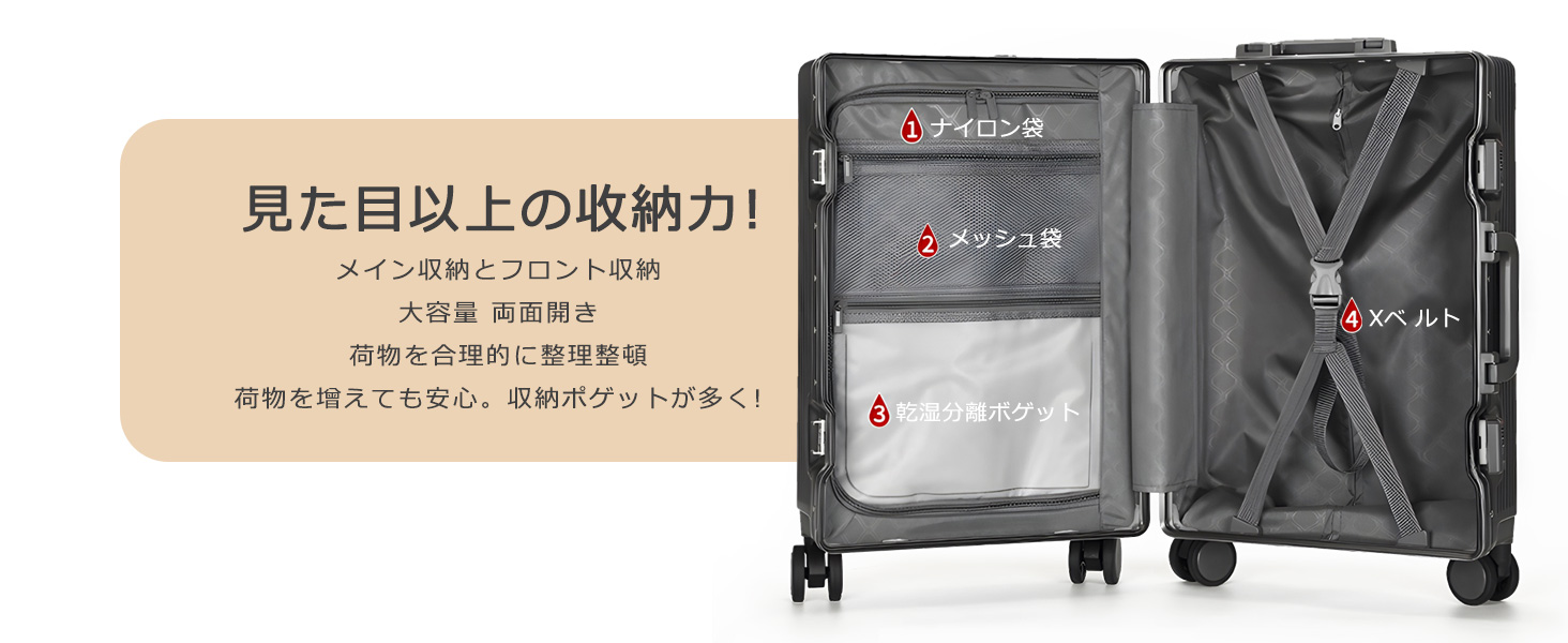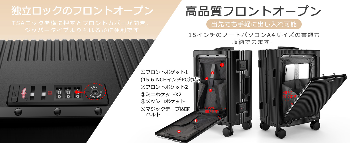 スーツケース 前開き キャリーケース 機内持ち込み可 フロントオープン xb03