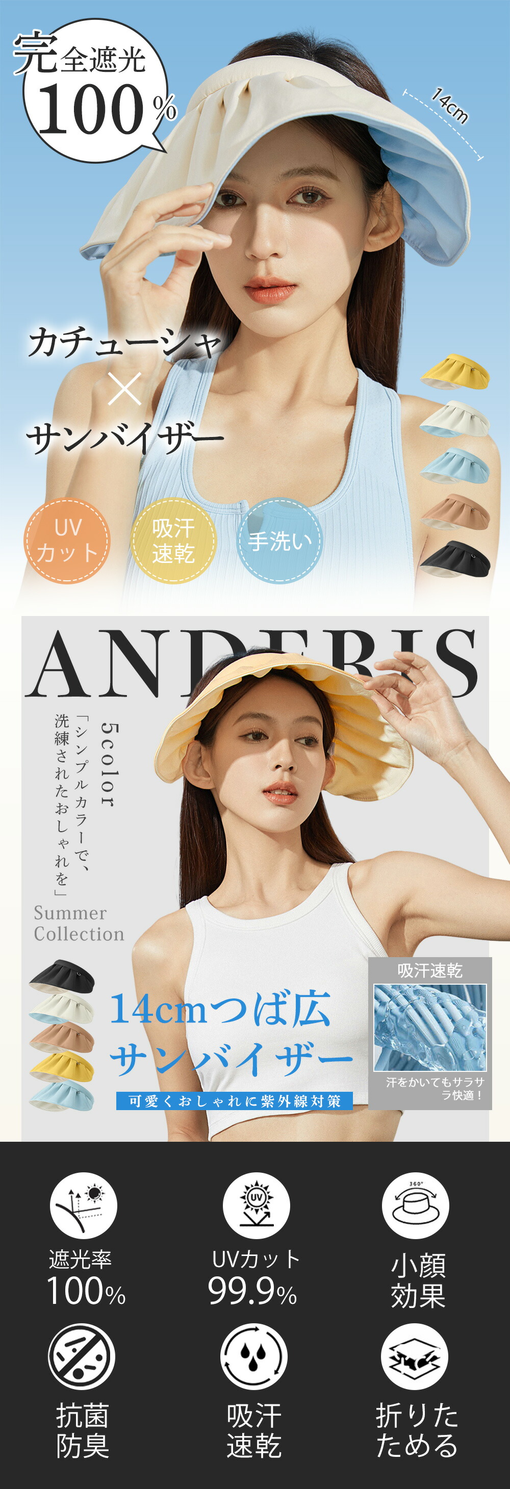 サンバイザー レディース uvカット カチューシャバイザー 折りたたみ yfm5